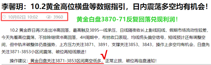 秦霜涵:9.30黄金公开思路继续大获全胜,日内多空继续拿利!