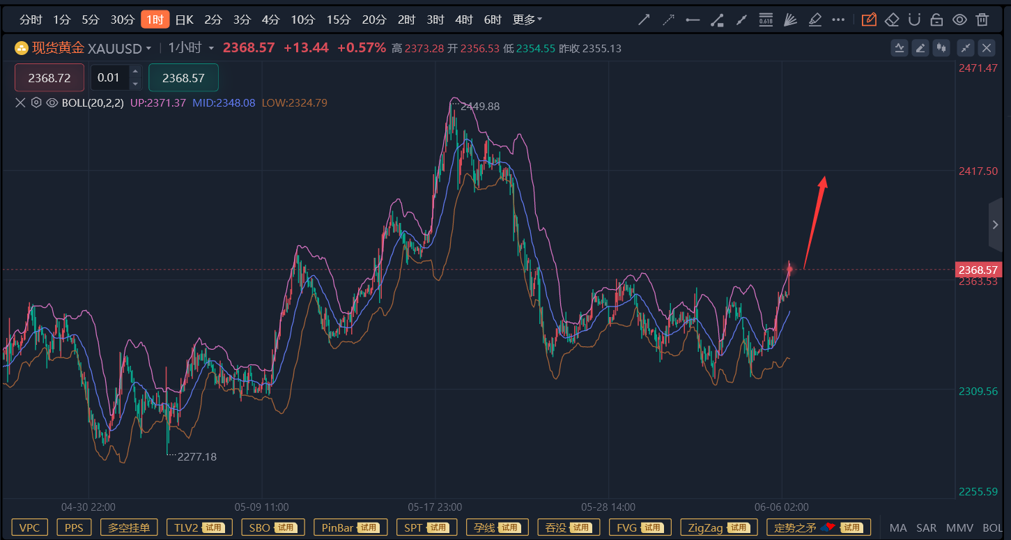 昨日周三,伦敦金下探2326美元后走强,晚间加速上行,最高涨至2358美元;周四早间,金价延续涨势至2370关口。