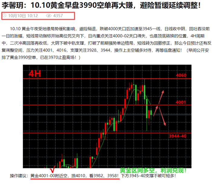 秦霜涵:10.28黄金震荡利润继续收割,日内先多后空!