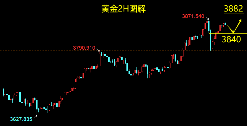 策略一:3840附近买入,保护3835,目标3871-3882;