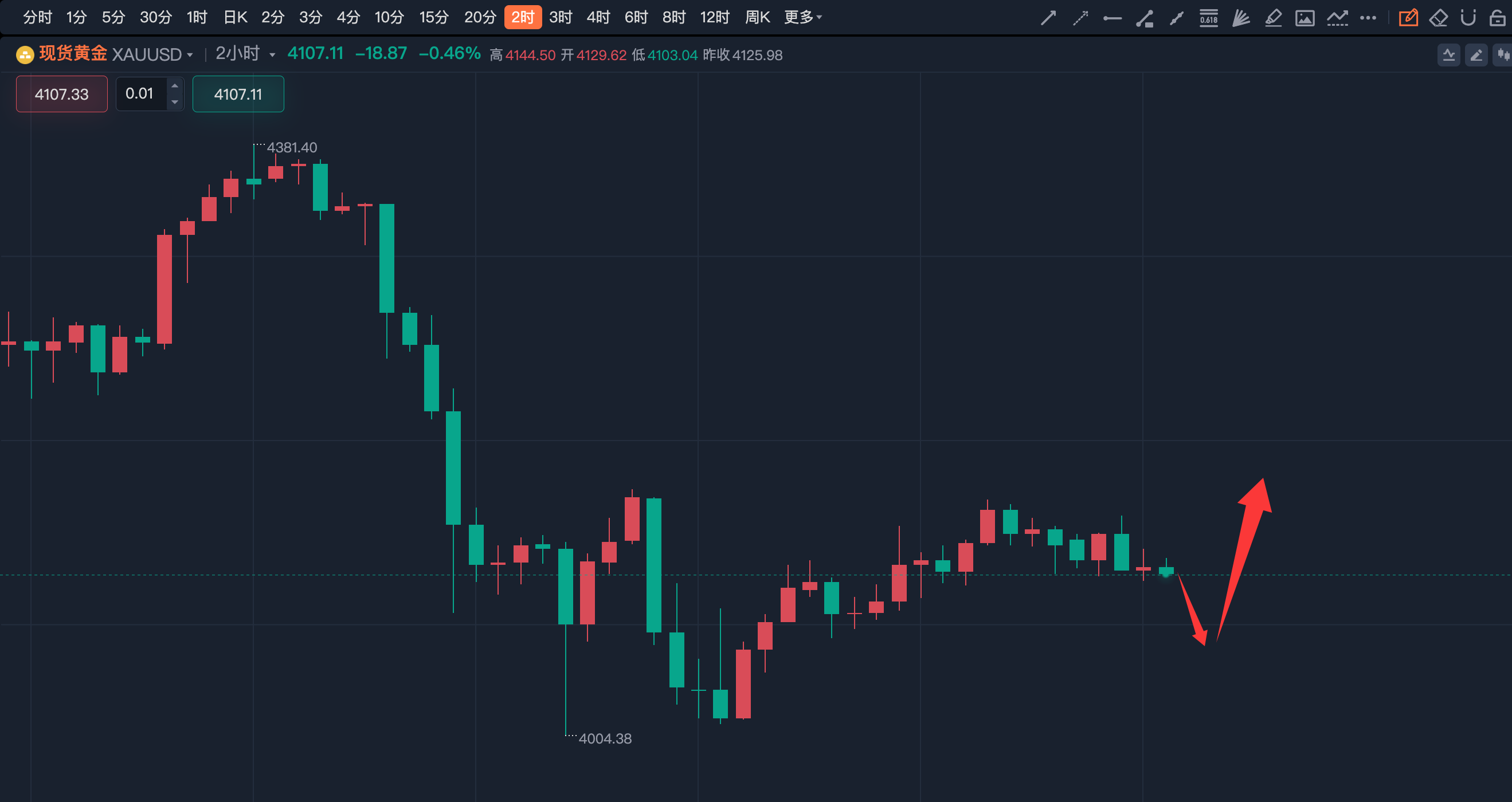 近期金价下跌的主要驱动力是大规模获利了结。在地缘政治紧张局势出现缓和迹象(如巴以停火、俄乌谈判)以及美元走强的背景下,前期累积的大量多头头寸选择平仓离场,导致金价承压;同时,市场对美联储的降息预期以及长期存在的地缘政治与经济不确定性,为金价提供了支撑,限制了下跌空间;周二周三黄金经历剧烈波动大跌后昨日震荡上涨最终日K收阳;目前从技术指标来看,2小时均线死叉,布林口缩口,黄金短期估计还会震荡,高位可以考虑做空,但是4小时MACD金叉,黄金下跌后可以低位做多,综合来看,还是下跌做多。
