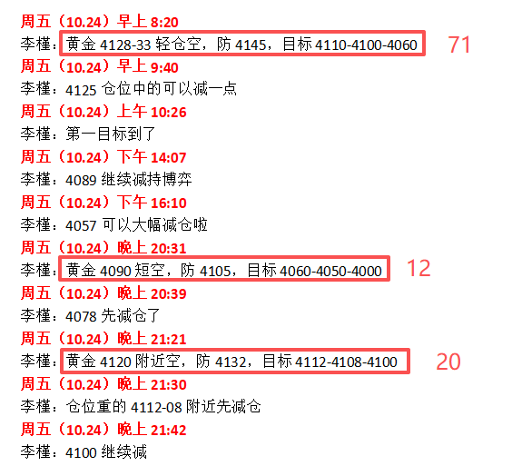 上周三李槿布局也是历经波澜,虽中途进多学员没止损,我们也顺利给到大家解t思路成功扭亏为赢!亚盘实战4150多小损,4128多虽短暂套,但是好在也顺利解了。美盘4116多4128大幅减仓,隔夜也来到了4179附近。还有早盘给出的思路4100-4105多也都收获不错,实时在4106多也有公开给到提示!