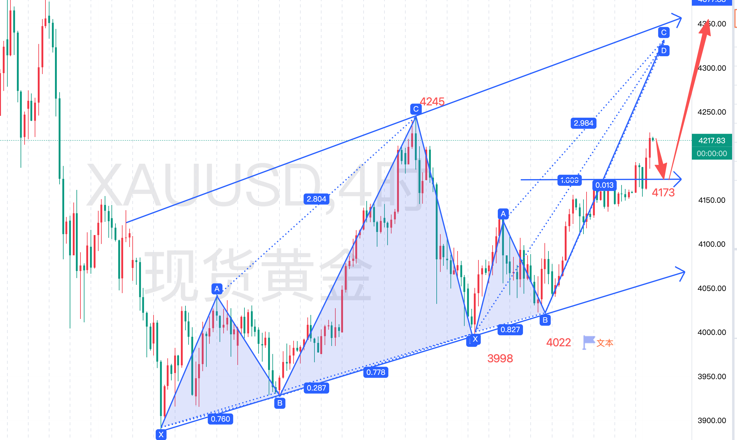 从黄金技术面来看,本周五黄金市场遭遇特殊状况,芝商所(CME)因数据中心故障,黄金期货交易全面中断休市,基本面不确定性加剧了市场情绪的异常波动。日内行情剧烈震荡,早盘小幅高开于 4158 位置后迅速拉升至 4193,随后震荡下行,欧盘时段受数据异常影响暴跌至日线低点 4153,此后多头强势反击,开启单边上涨行情,日线最高触及 4226,最终日线、周线、月线均收于 4217 位置,月线与周线收出大阳,多头破位上行格局十分明确。
