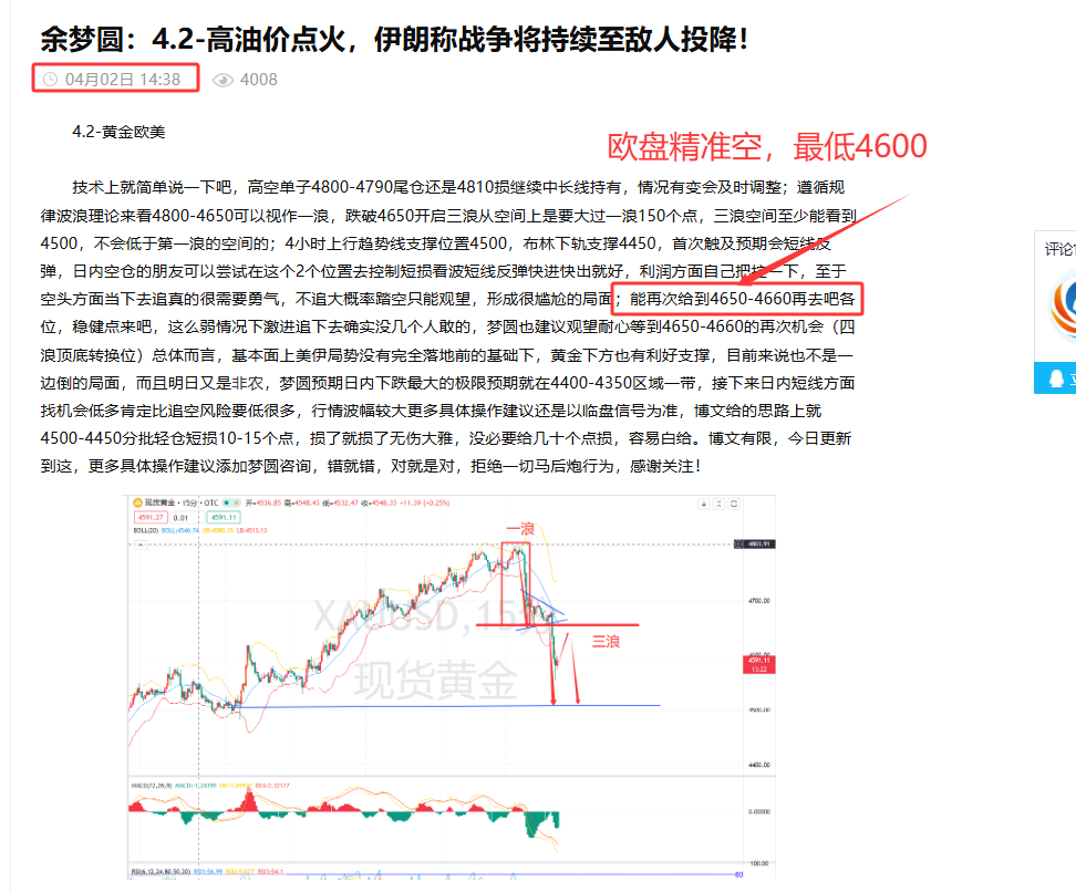 策略二:黄金回调4575-4580附近分批做多(买涨)十分之二仓位,止损8个点,目标4600-4610附近,破位看4620一线;(策略具有时效性,更多实施布局建议在钉钉实盘学员内部公布)