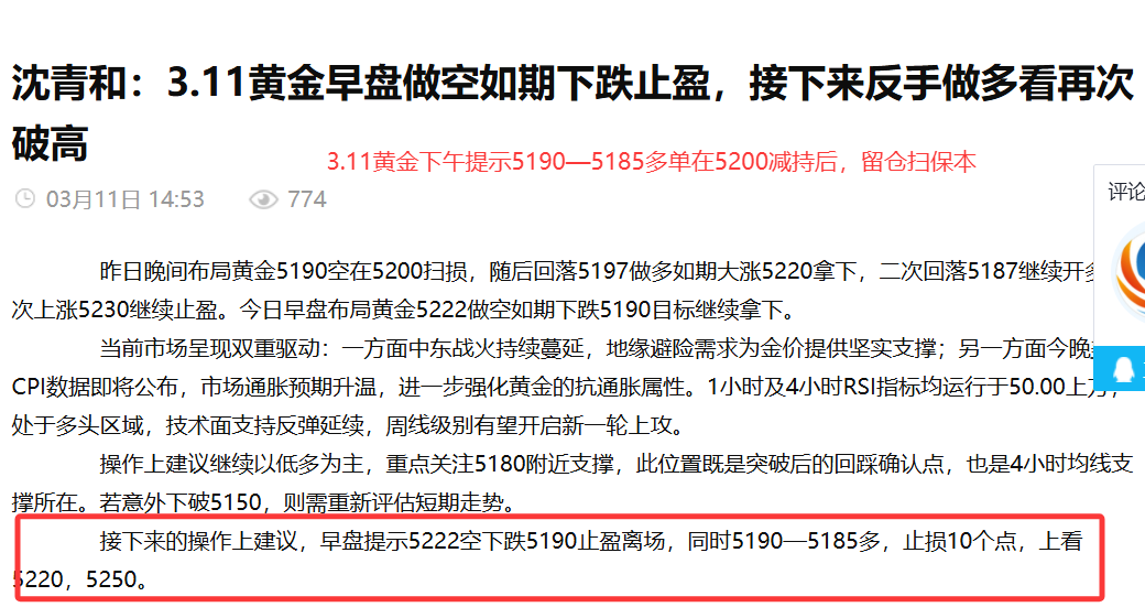 田浩洋:3.14黄金晚间操作策略,多头震荡是否重燃信心