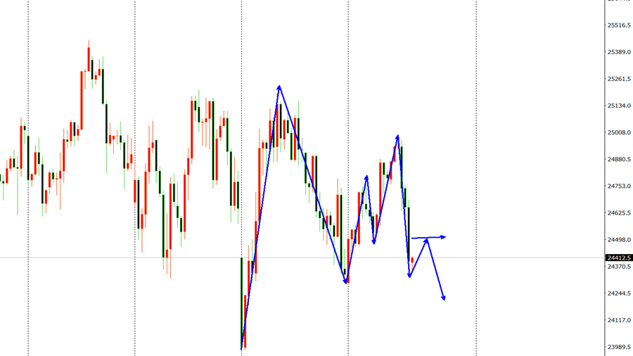 纳指市场昨日开盘在24866.88美元,后行情先拉升给出24982.83美元,后行情承压强势回落,日线最低给到了24333.12美元,后整理,日线最终收线在了24383.1美元,后日线以一根上影线很长的大阴线收线,而这样的形态收尾后,日线阴包阳回落信号。综合来看,高博景总结:纳指再次冲高回落,考验了震荡宽幅的阻力,如果反弹不强延续回落的概率较大,今日操作上考虑反弹做空为先,低多需等待,上方关注24508-24750美元阻力,下方关注24300-24000美元支撑。
