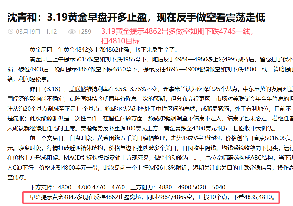 黄金周三上午提示5015做空如期下跌4985拿下,随后反手4984—4980多上涨4995减持后,留仓扫了保本损,破位4900后,晚间提示4867做空下跌4850拿下,提示反抽4895—4900继续做空如期下跌4800一线,策略提前给,利润轻松拿。周二上午布局第一单5020—5025空提前在5020走,二次反弹5029/5031空下跌5005。午后提示5020/5030继续做空如期下跌4995。晚间提示5024—5032继续做空又是如期大跌4975目标拿下。周一上午布局黄金5020—5025空如期下跌5000一线拿利,午后反弹5032—5037二次做空又是如期下跌4090目标。随后反手5087/5082多,内部5073继续多,大涨5038,扫5030目标。晚间5022空下跌4995拿下,二次反弹5023/5037补空如期大跌5000再次拿下,本人社区现价更新给出,欢迎翻阅查验。